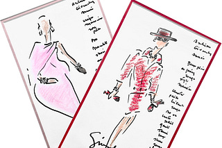 Taking a look at a prized possession: two sketches given to me by Hubert de Givenchy.